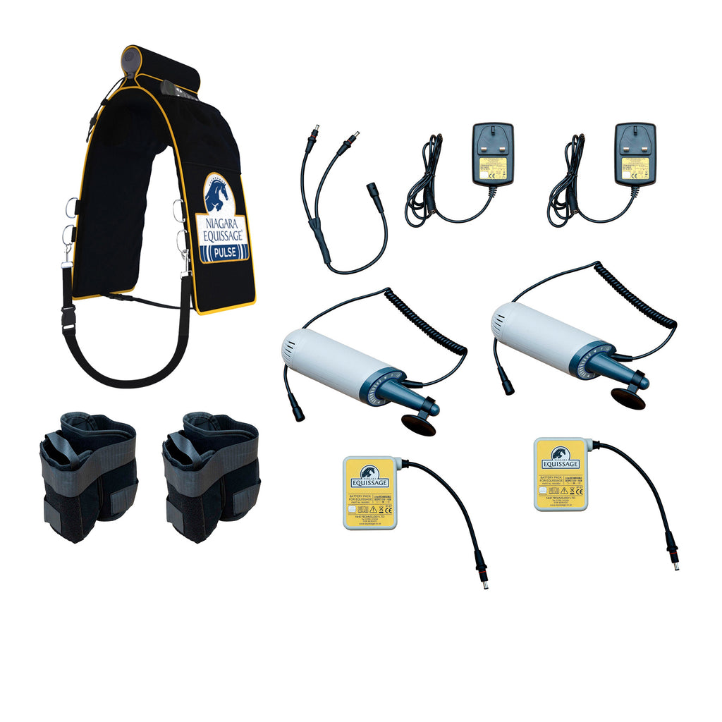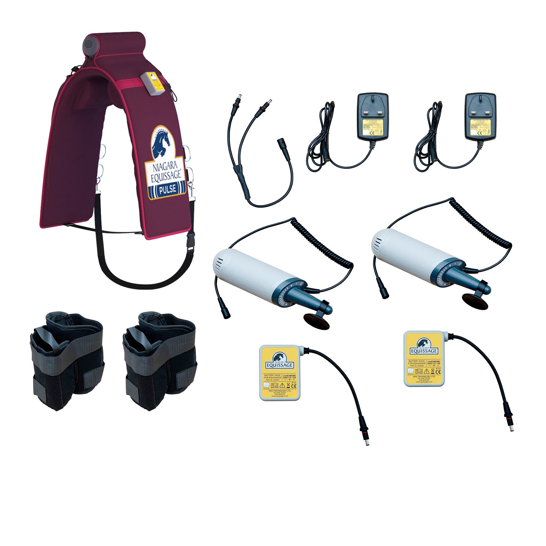 There are 2 Equissage hand units as part of the set, which are valuable tools and helps target other areas of your horse’s body including the legs where it can be fitted into the leg boots. Using the boot in conjunction with the hand unit will create a deep circulatory massage to the whole leg. This in turn will increase blood and lymphatic circulation, relax muscles and help improve joint mobility.